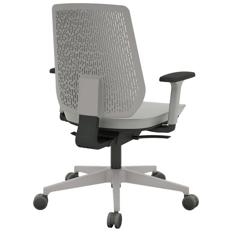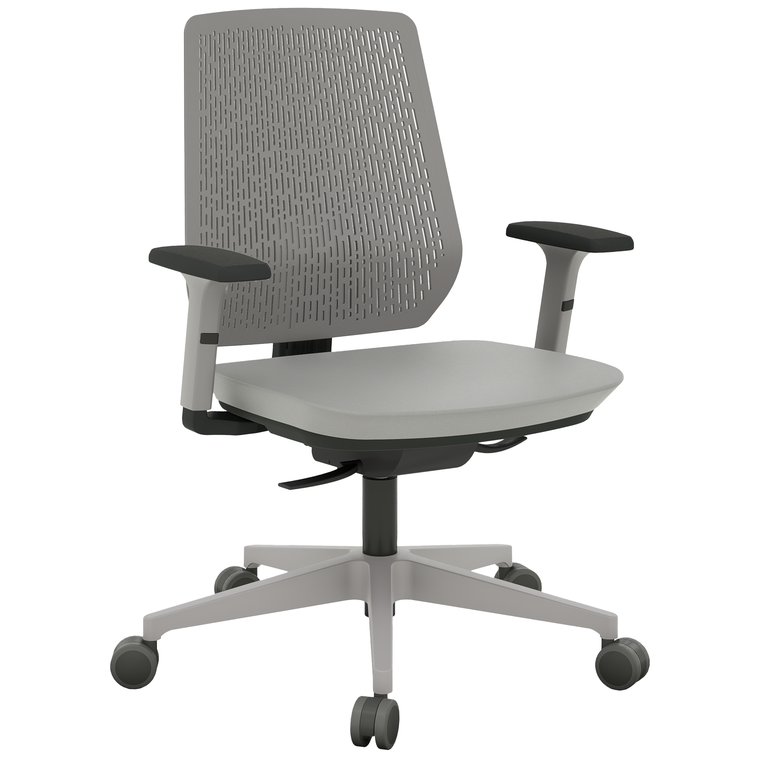Modelo com estrutura plástica de acabamento preciso, oferecendo elegância visual à distância e excelente ergonomia.
